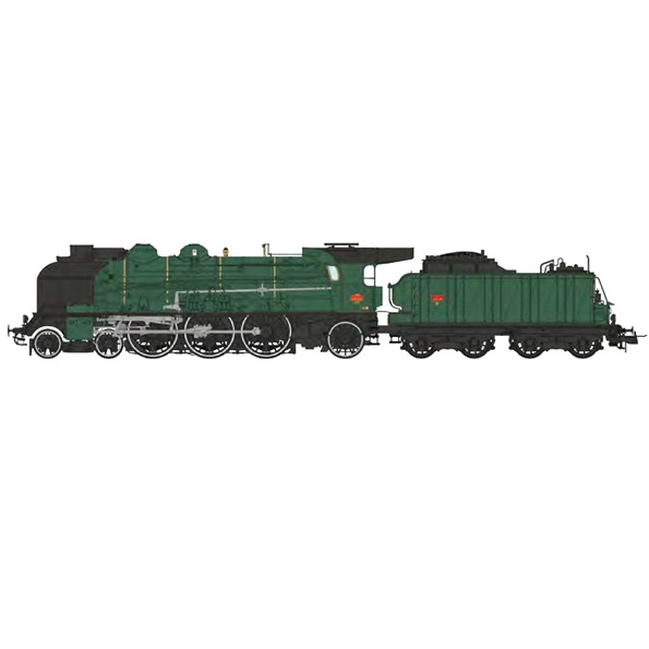 Machine 4-231 G 222 Tours – cheminée double, grands écrans pare-fumée, ACFI, tender 30m³, machine et tender Verts, filets rouges, SNCF, Ep. III, Digital Son 3 rails