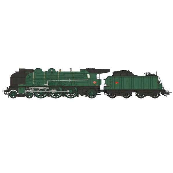 Machine 4-231 G 246 Tours - cheminée double, grands écrans pare-fumée, ACFI, tender 30m³, machine et tender Verts, filets rouges, SNCF, Ep. III - Alsace Modélisme