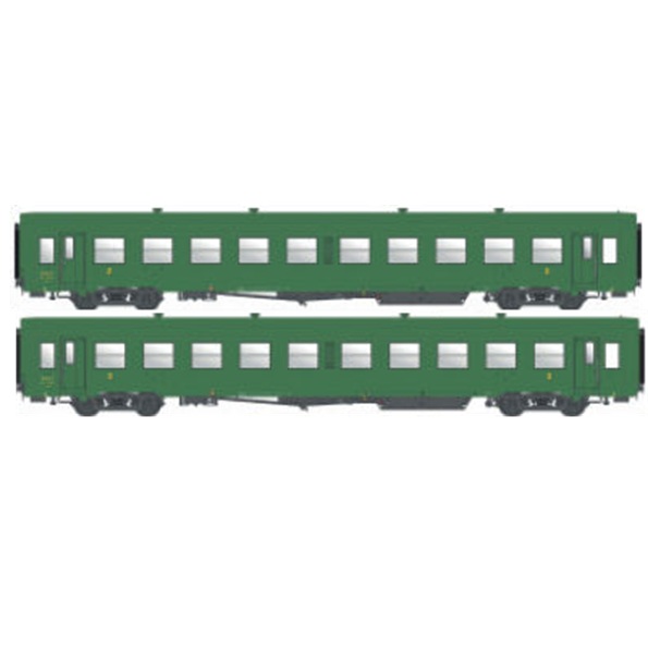 Set de 2 voitures USI longues Bmyfi, livrée vert, toit vert, SNCF, Ep. III, éclairage intérieur