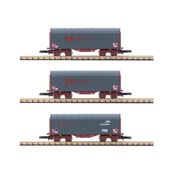 Set de 3 wagons plats bâchés Shimms, Ermewa, Ep. VI