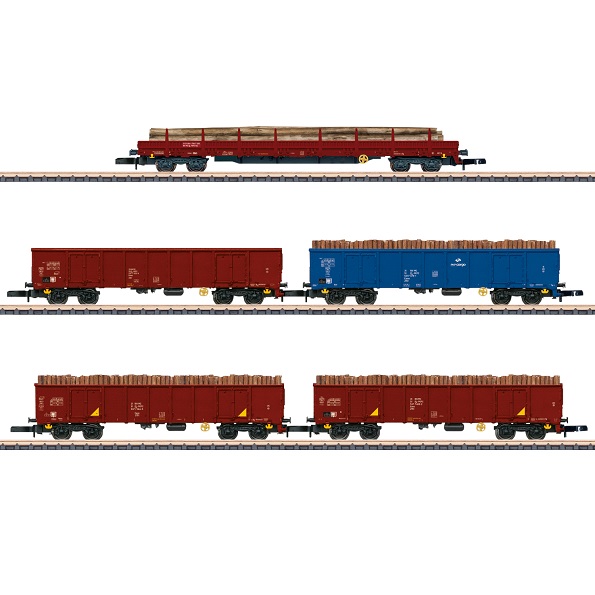 Set de 5 wagons de transport de bois, PKP, Ep. VI