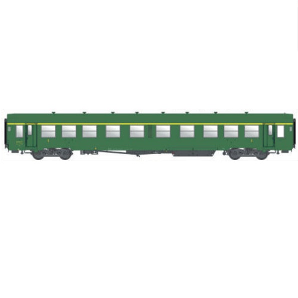 Voiture USI longue A4t4t, livrée vert, toit vert, SNCF, Ep. III, éclairage intérieur