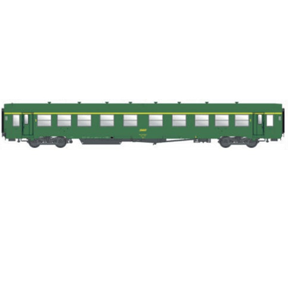Voiture USI longue At4, livrée vert, toit vert, logo encadré jaune, SNCF, Ep. IV, éclairage intérieur