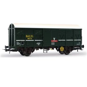 Wagon couvert à essieux OCEM 29 K, roues à rayons, brun/noir, SNCF, Ep. III