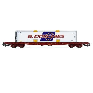 Wagon S70 porte conteneur, livrée rose “CNC”, conteneurs “FB”, SNCF, Ep. IV